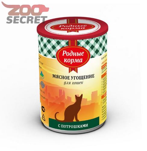 Родные Корма Консервы для кошек Мясное угощение с Потрошками 12х340гр.